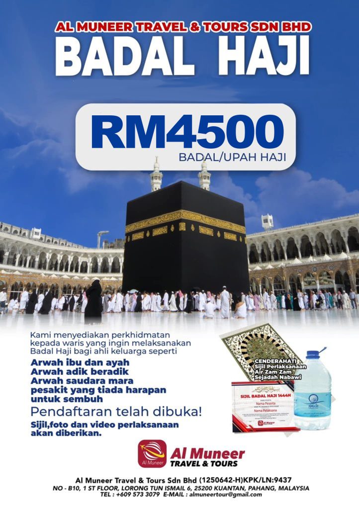 BADAL HAJI Badal Umrah Nama Badal Email No telefon Alamat Jantina Lelaki Perempuan Maklumat Waris Pilihan Pakej Badal haji Badal Umrah Akuan Peserta Bahawa saya bersetuju dengan segala maklumat pakej yang ditawarkan. Bahawa saya bersetuju dengan terma dan syarat syarikat. Hantar
